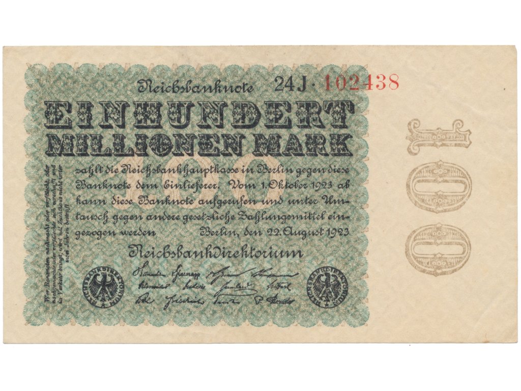 Německo, 100 Millionen Mark 1923, Kreuzblütten, Ro.106h