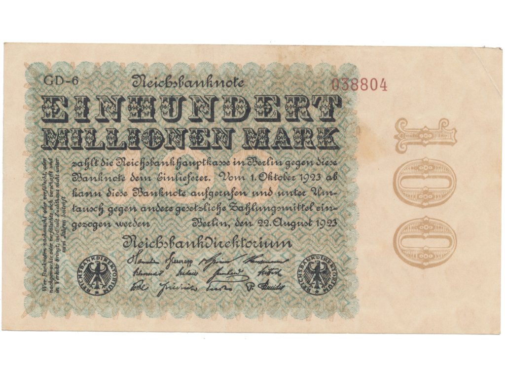 Německo, 100 Millionen Mark 1923, Sterne, Ro.106u