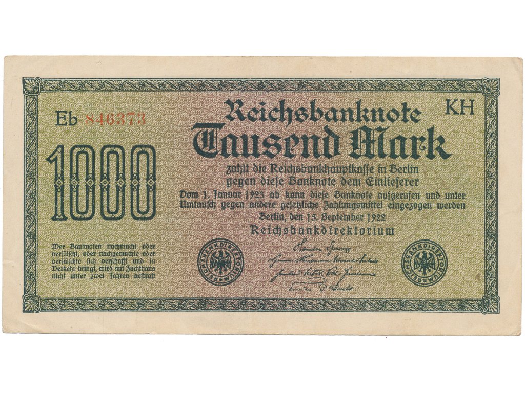 Německo, 1000 Mark 1922, vod. Achterstreifen, Ro.75o