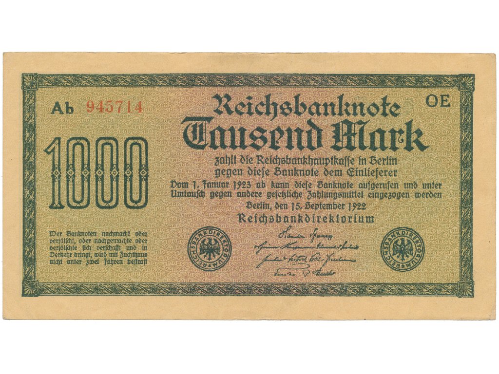 Německo, 1000 Mark 1922, vod. Dornen, Ro.75d