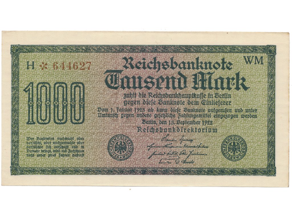 Německo, 1000 Mark 1922, vod. Mäander, hnědé 6-místné číslo, Ro.75i