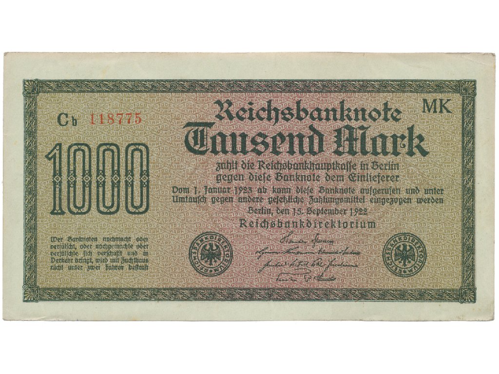Německo, 1000 Mark 1922, vod. Wellen, 6-místné číslo, Ro.75q