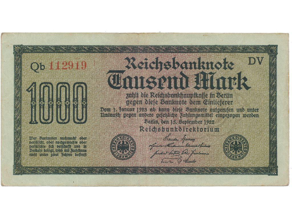 Německo, 1000 Mark 1922, vod. Wellen, 6-místné číslo, Ro.75q