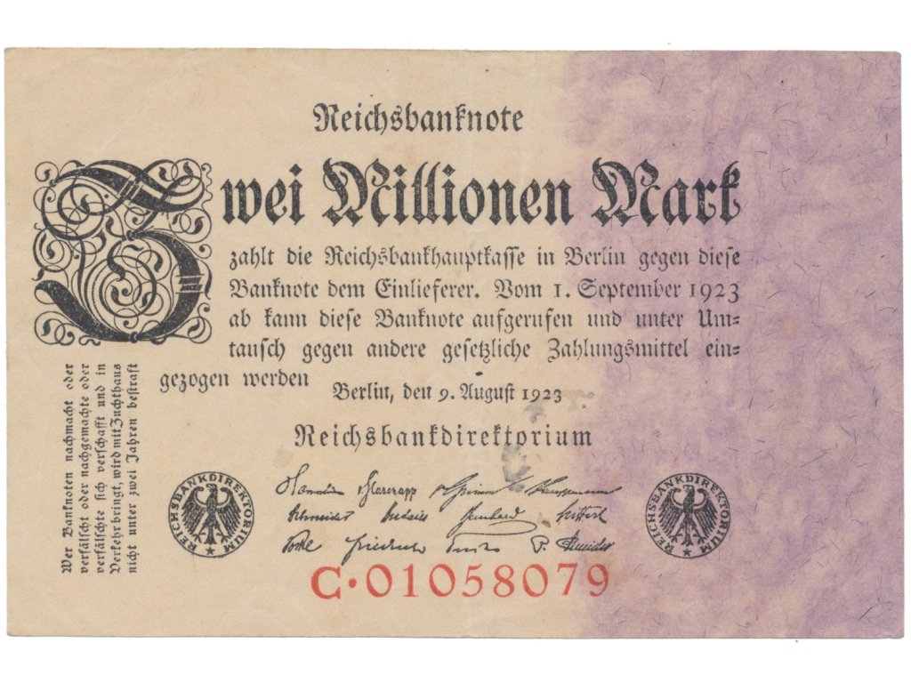 Německo, 2 Millionen Mark 1923, Ro.102a