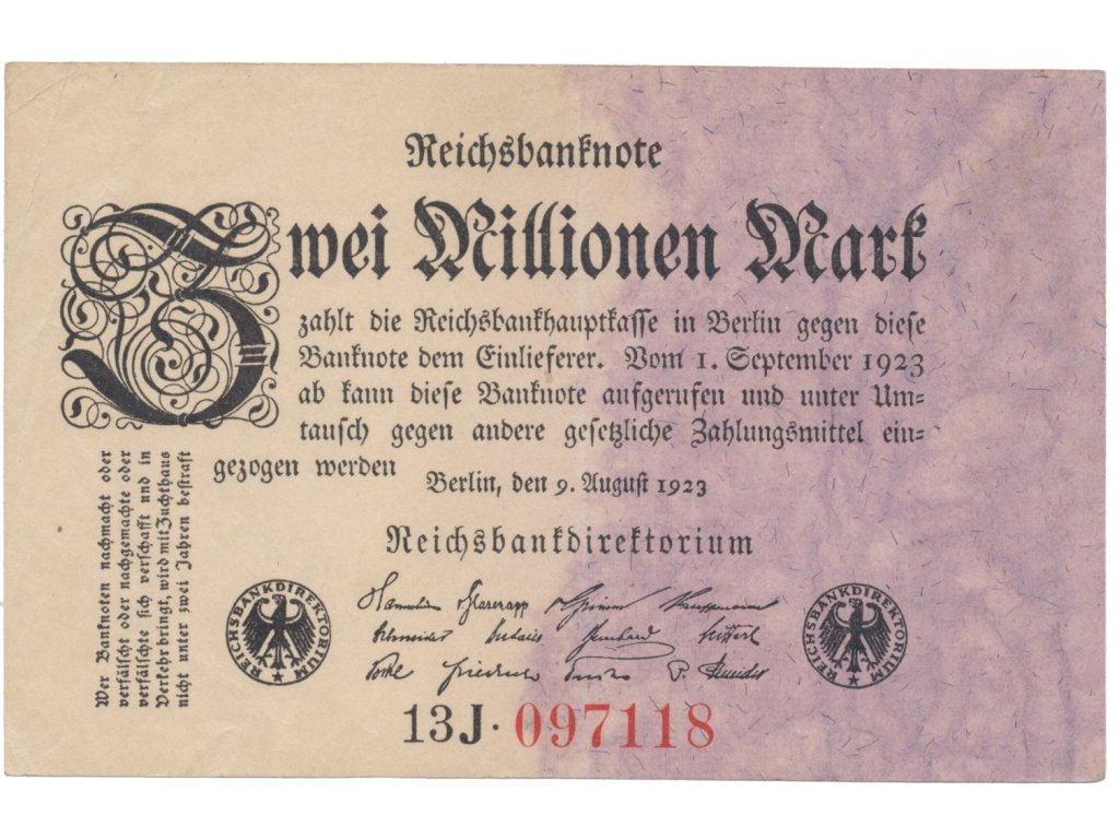Německo, 2 Millionen Mark 1923, Ro.102b
