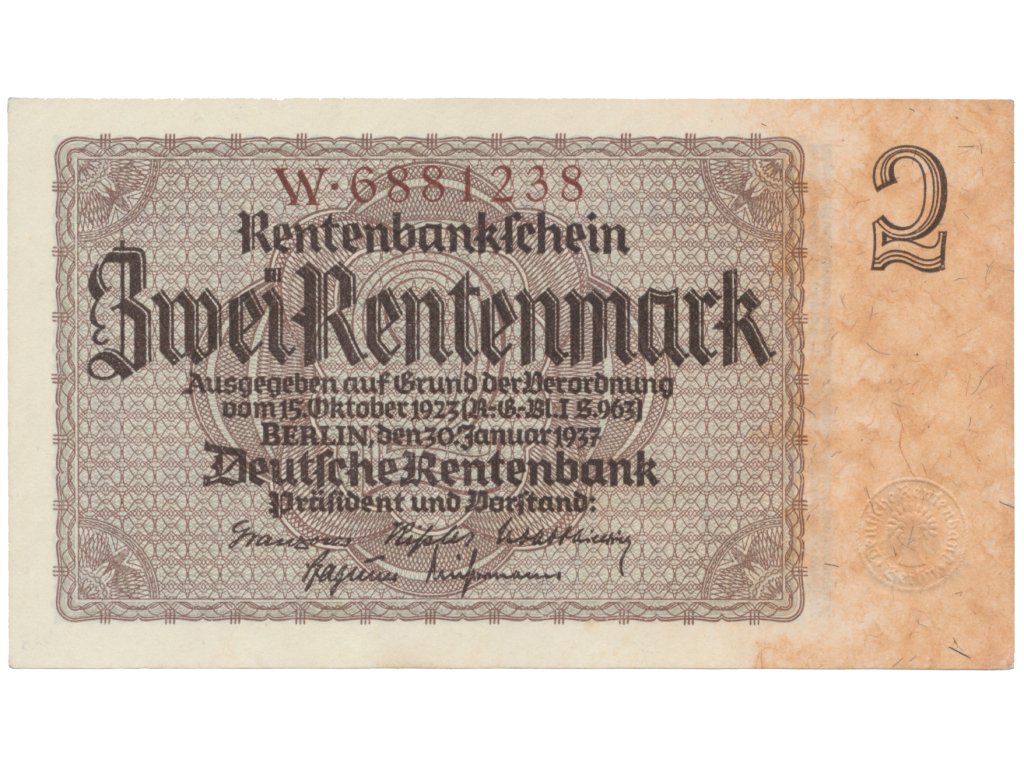 Německo, 2 Rentenmark 1937, hnědý říšský 7-místný číslovač, Hej.D12a
