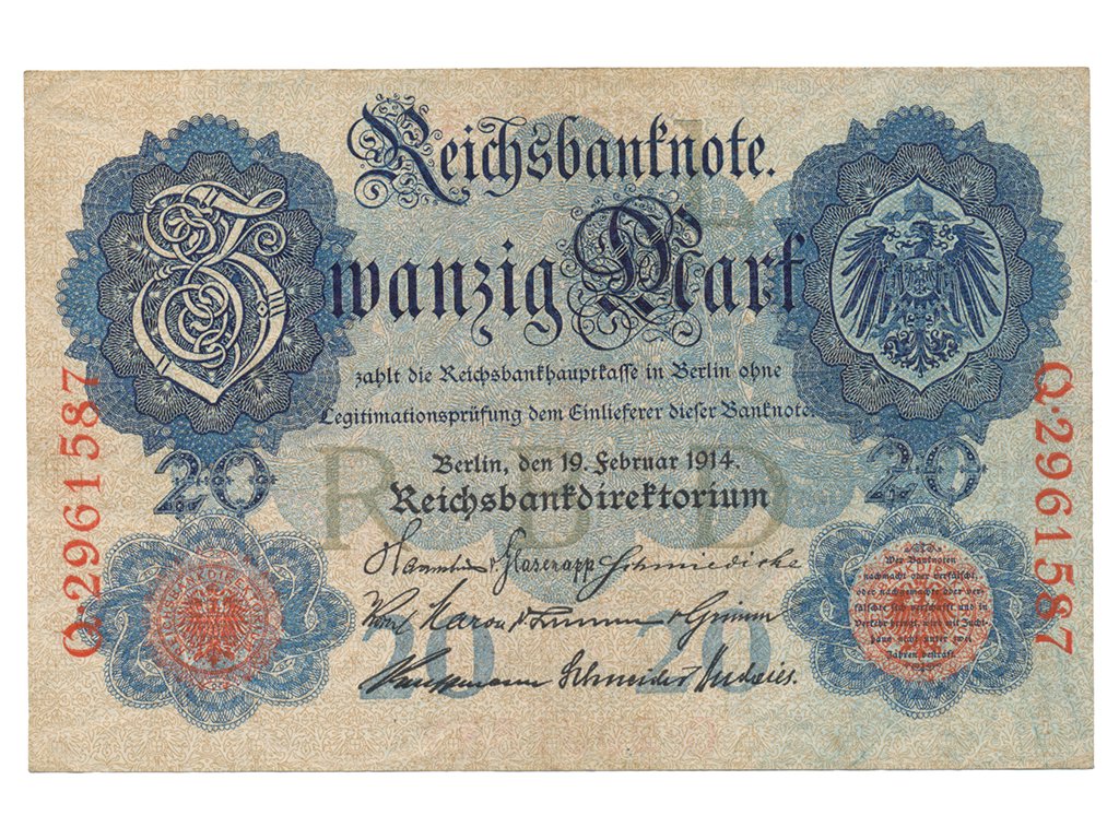 Německo, 20 Mark 1914, 7-místný číslovač, Ro.47b