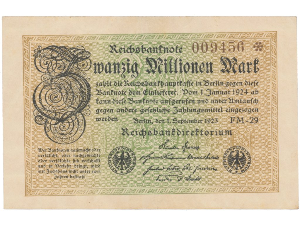 Německo, 20 Millionen Mark 1923, Ro.107e