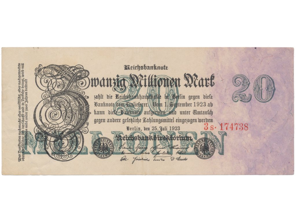 Německo, 20 Millionen Mark 1923, Ro.96b