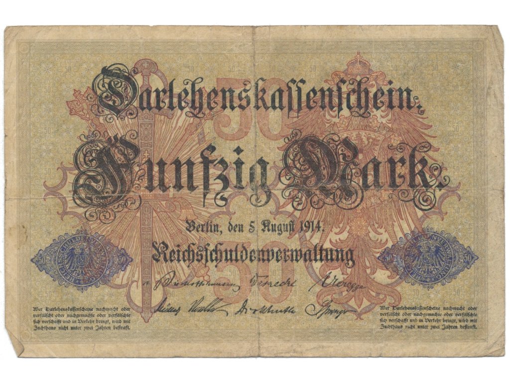Německo, 50 Mark 1914, 6-místný číslovač, Ro.50a