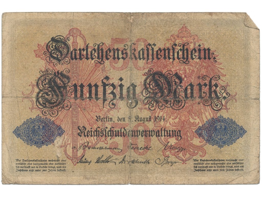 Německo, 50 Mark 1914, 6-místný číslovač, Ro.50a
