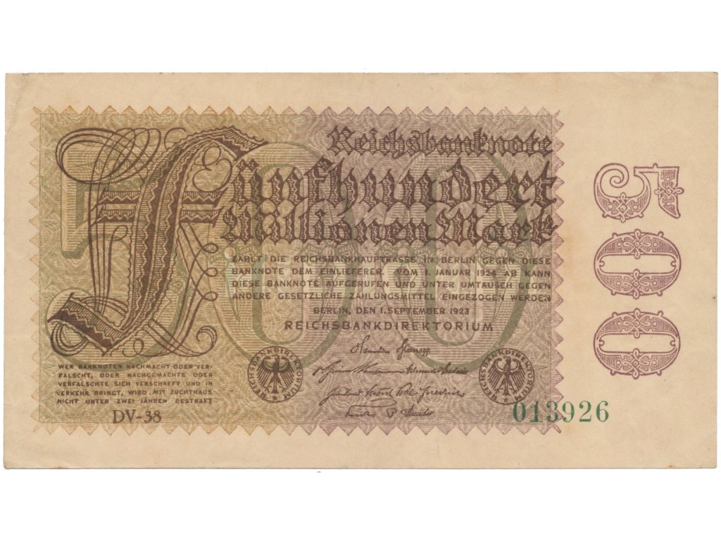 Německo, 500 Millionen Mark 1923, vodoznak Hakensterne, Ro.109d