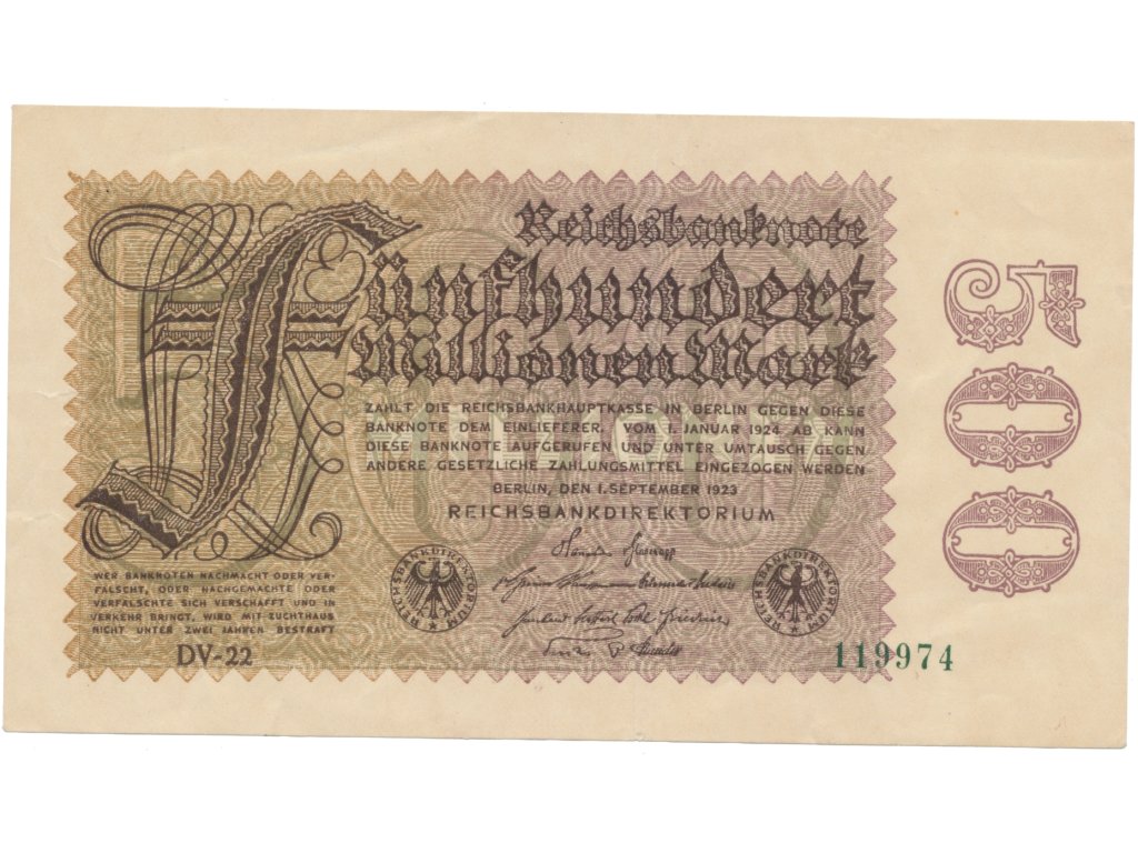 Německo, 500 Millionen Mark 1923, vodoznak Hakensterne, Ro.109d