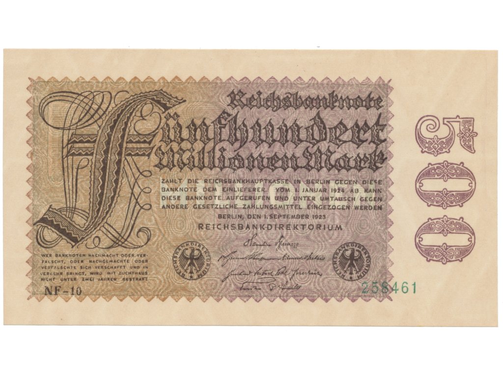 Německo, 500 Millionen Mark 1923, vodoznak Hakensterne, Ro.109d