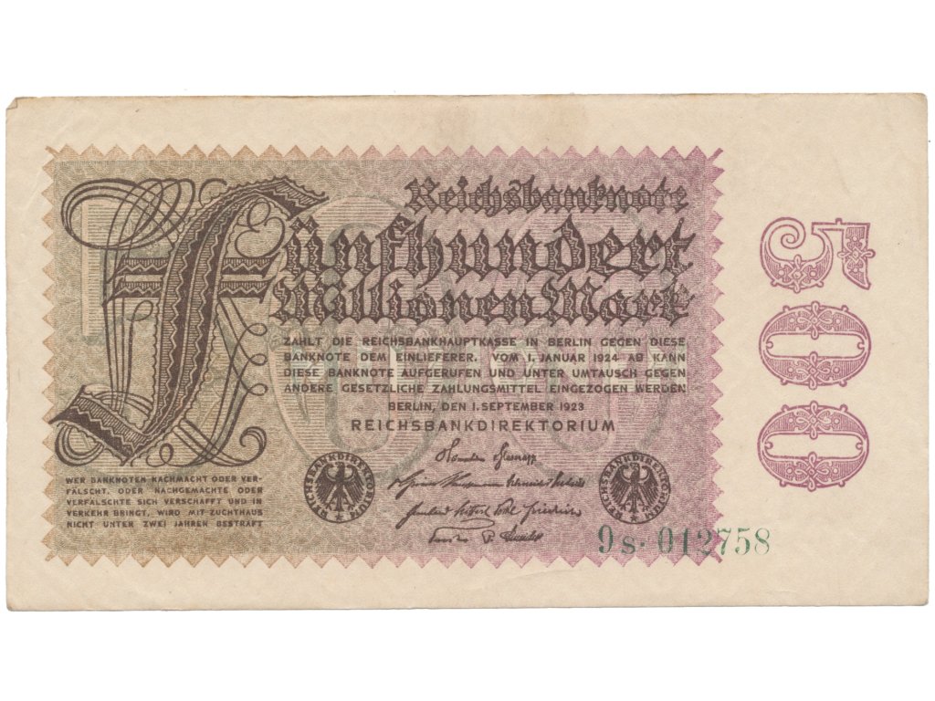 Německo, 500 Millionen Mark 1923, vodoznak Kreuzblütten, Ro.109b