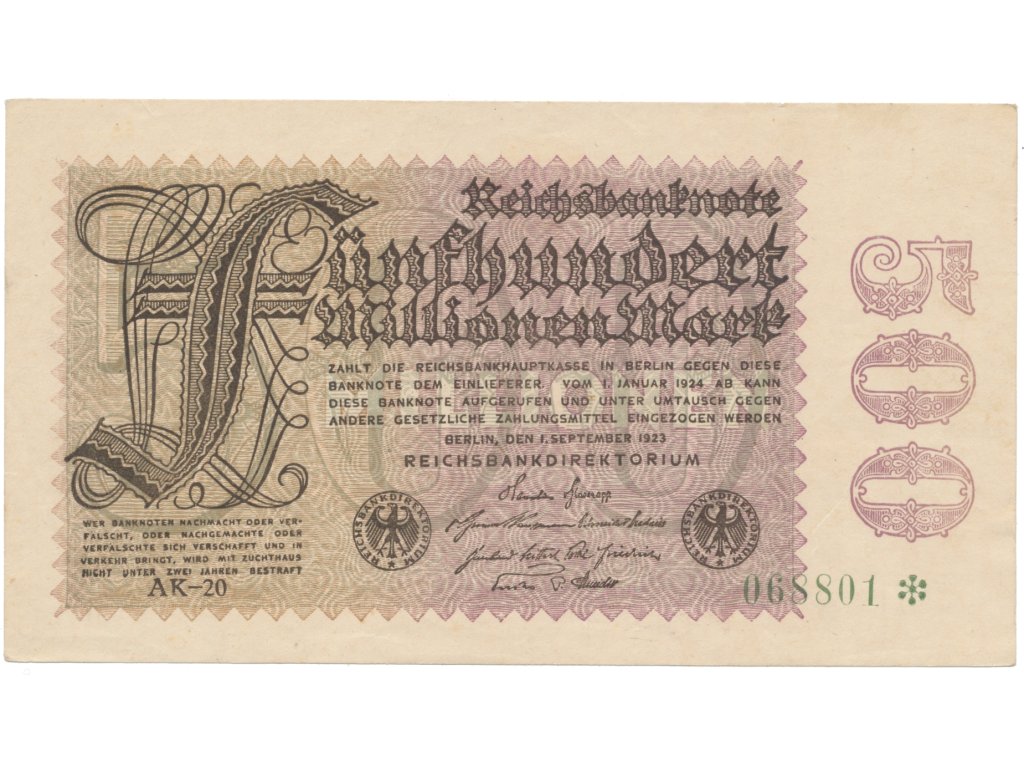 Německo, 500 Millionen Mark 1923, vodoznak Ringe, Ro.109f