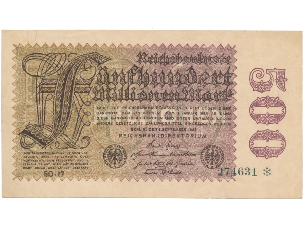 Německo, 500 Millionen Mark 1923, vodoznak Sterne, Ro.109h