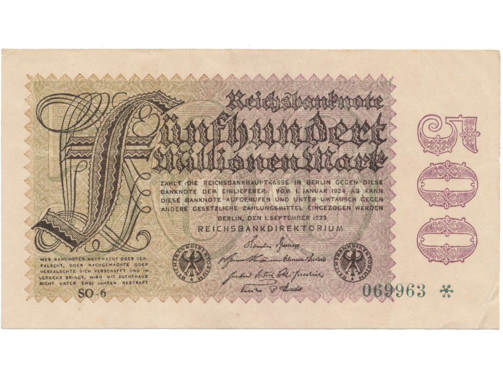 Německo, 500 Millionen Mark 1923, vodoznak Sterne, Ro.109h