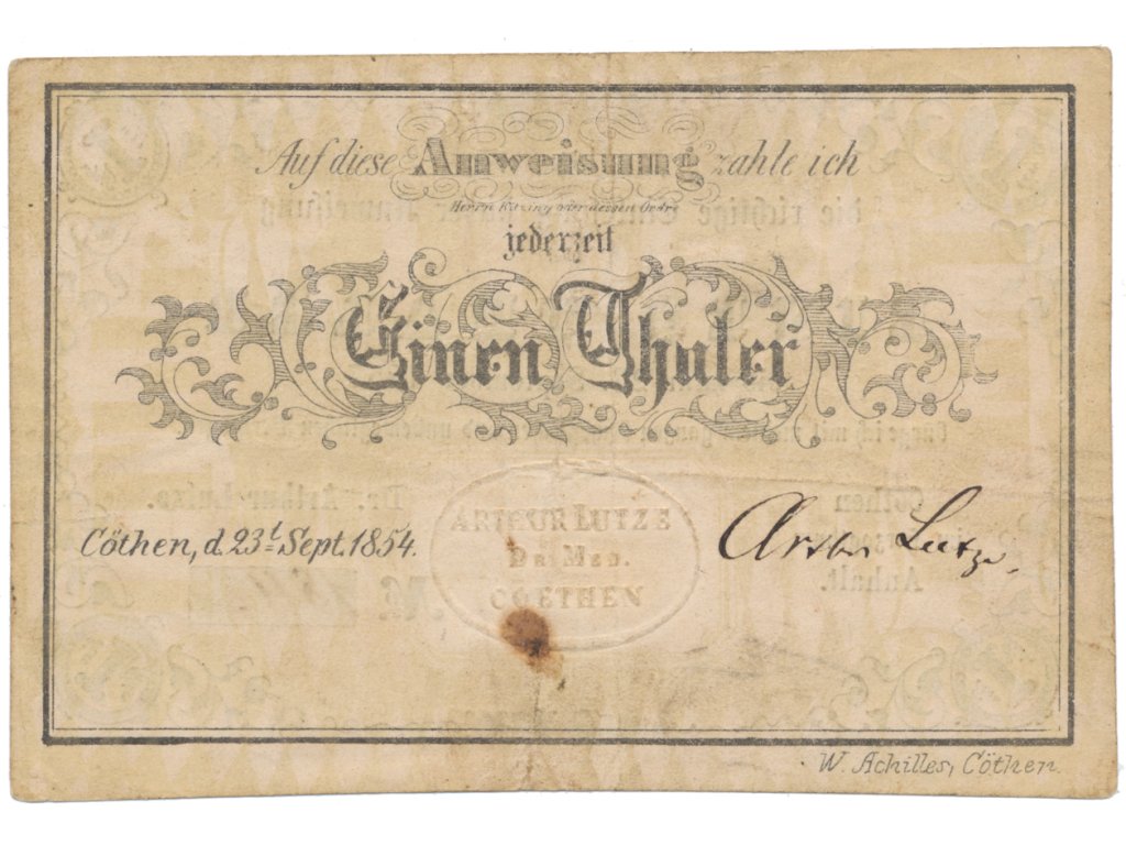Německo, Anhalt, Artur Lutze, Cöthen, 1 Thaler 1857