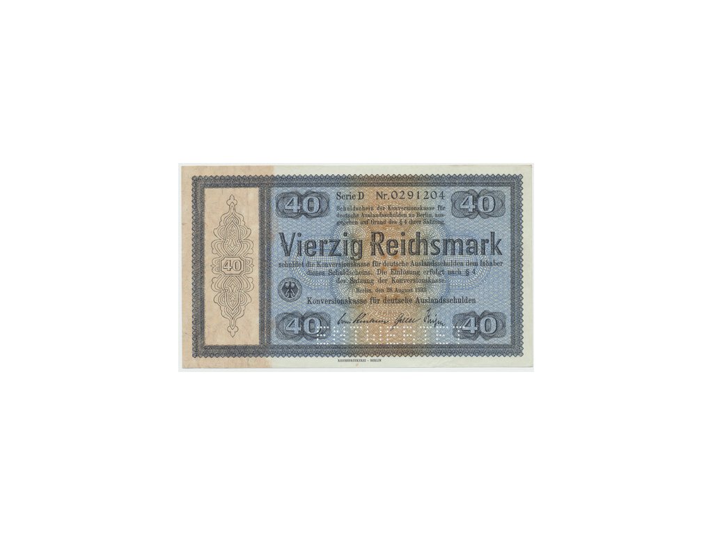 Německo - Konversionskasse, 40 RM 1933, perforace "ENTWERTET", Ro.703E1
