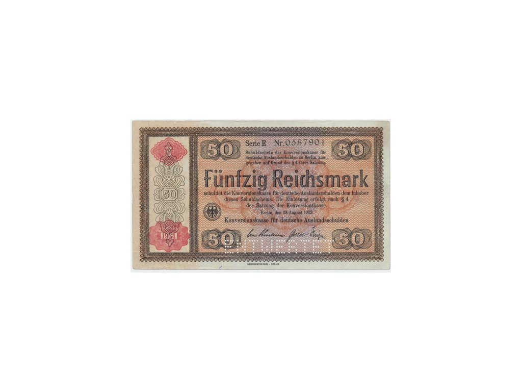 Německo - Konversionskasse, 50 RM 1934, perforace "ENTWERTET", Ro.712E1