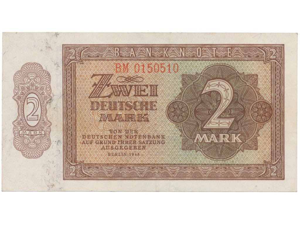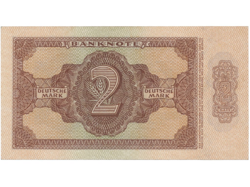 Německo - NDR, 2 DM 1948, tisk NDR (1951), 7-místný číslovač, Ros.341e