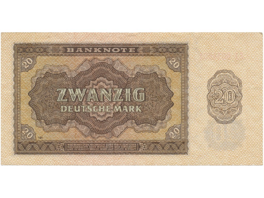 Německo - NDR, 20 DM 1948, tisk NDR (1952), 7-místný číslovač, Ros.344d