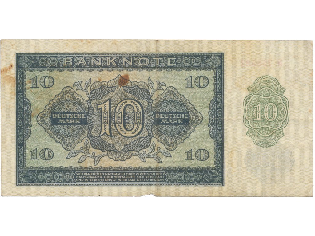 Německo - NDR, 10 DM 1948, tisk SSSR, 1 písmeno + 6-místný číslovač, Ros.343a