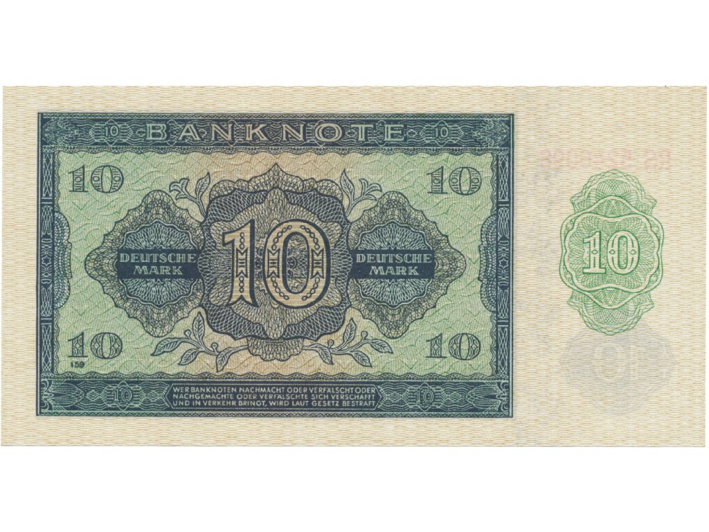 Německo - NDR, 10 DM 1948, tisk NDR (1952), 7-místný číslovač, Ros.343d