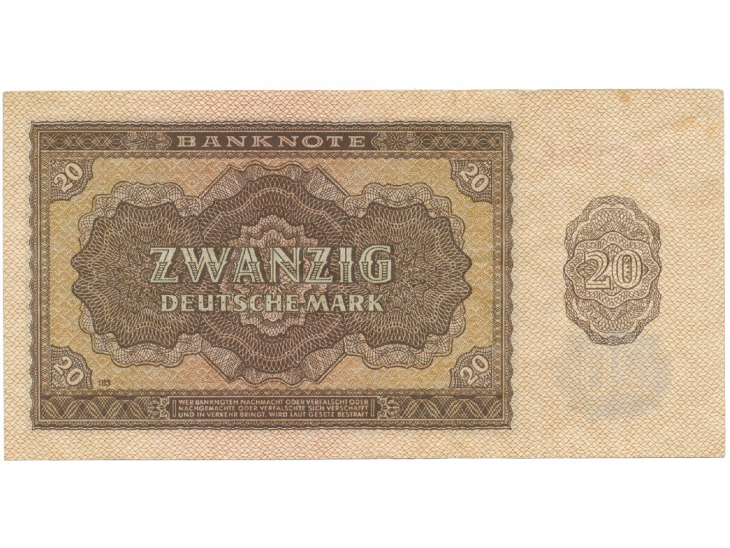 Německo - NDR, 20 DM 1948, tisk NDR (1952), 7-místný číslovač, Ros.344d