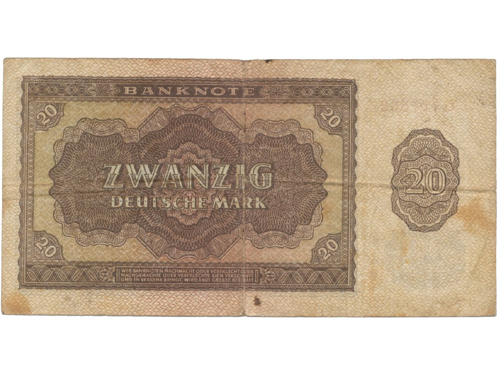 Německo - NDR, 20 DM 1948, tisk SSSR, 1 písmeno + 6-místný číslovač, Ros.344a