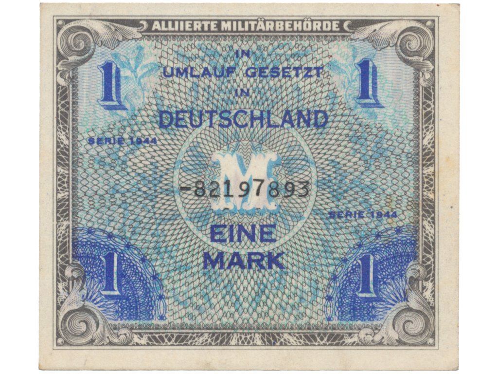 Okupační poukázky Allierte, 1 Mark 1944, tisk SSSR, 8-místný číslovač, Hej.AM2d