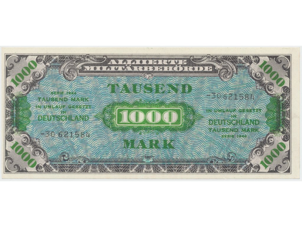 Okupační poukázky Allierte, 1000 Mark 1944, tisk SSSR, 8-místný číslovač, Hej.AM8c