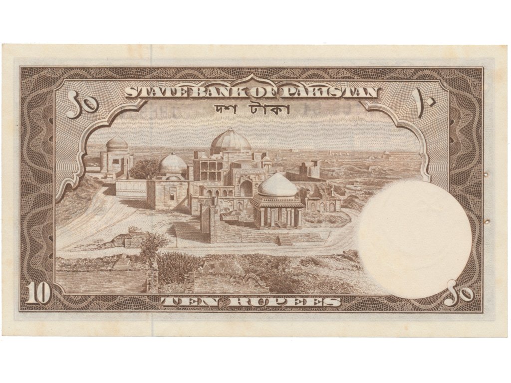 Pákistán, 10 Rupees (1951), P.13, starší typ číslovače