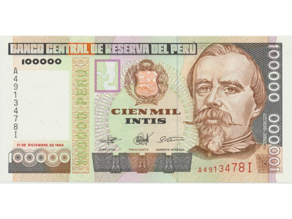Peru, 100.000 Intis 1988, tisk BdM, P.145
