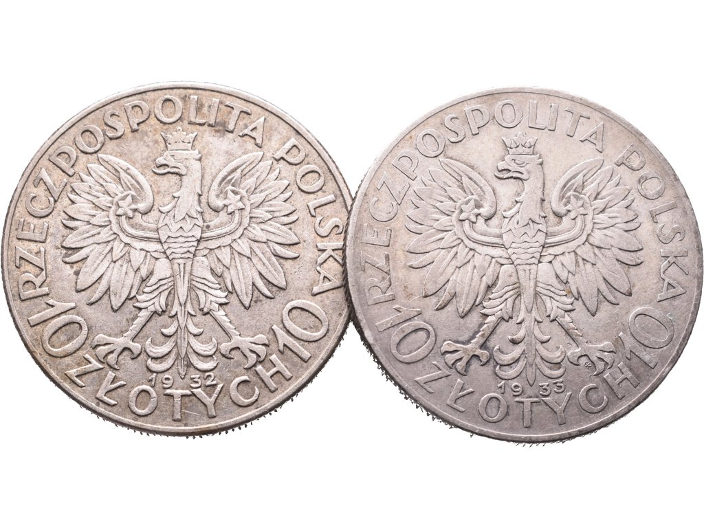 Polsko, 10 Zlotých 1932, 1933 (Londýn a Varšava)