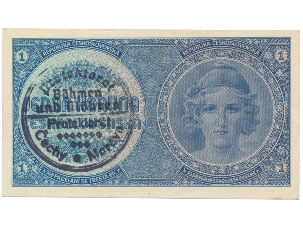 Protektorát Čechy a Morava, 1 Koruna b.d. (1938/1940), ruční razítko, Hej.28a