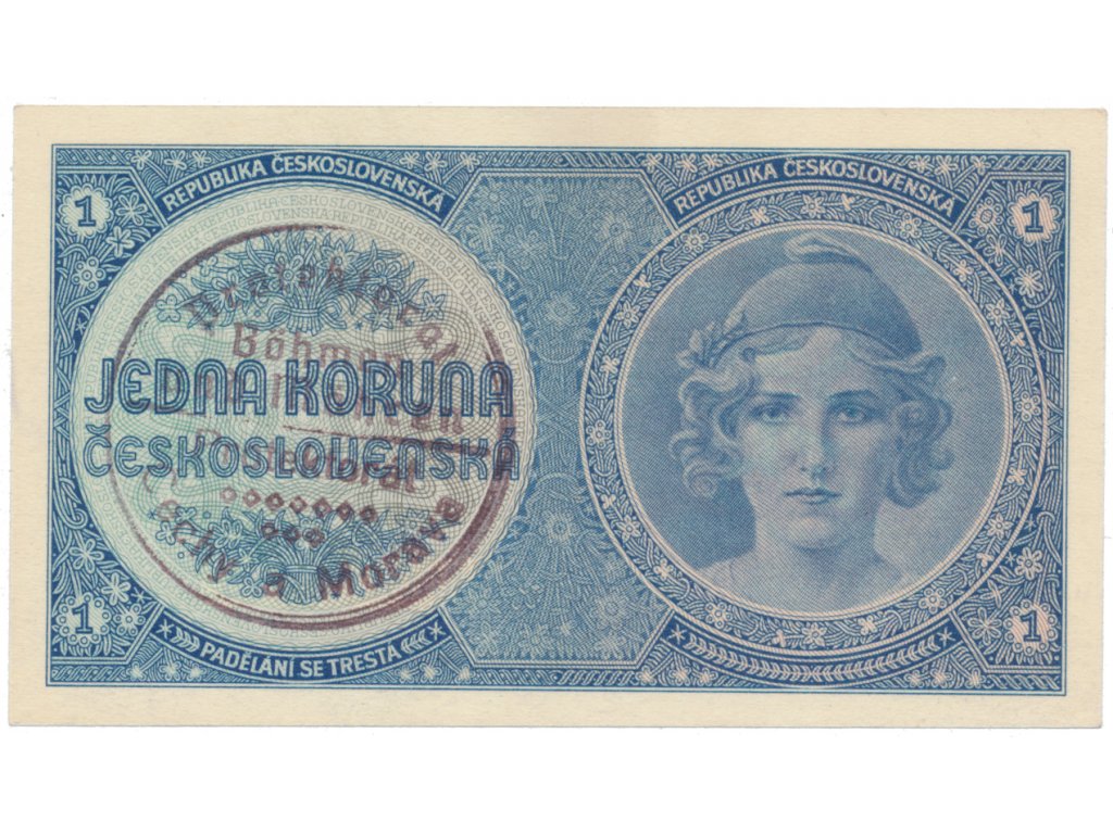 Protektorát Čechy a Morava, 1 Koruna b.d. (1938/1940), ruční razítko, Hej.28a