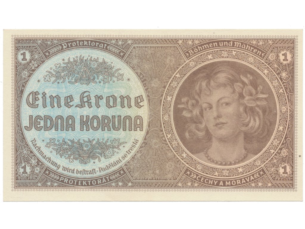 Protektorát Čechy a Morava, 1 Koruna b.d. (1940), tisk TB NBČM, série A, Hej.30aA
