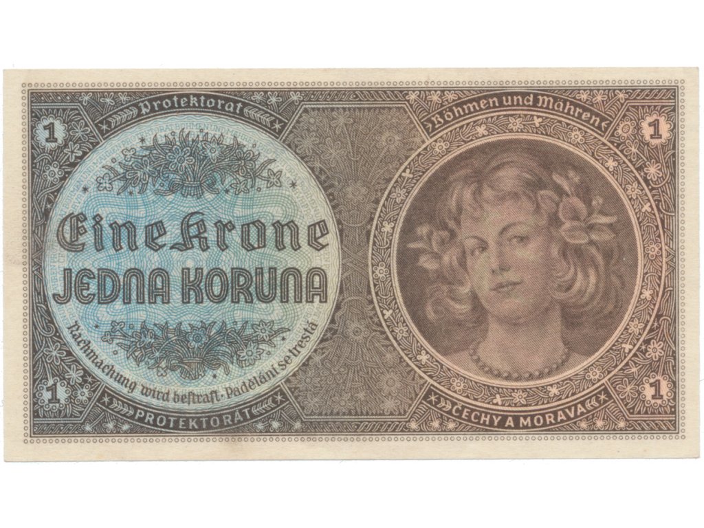 Protektorát Čechy a Morava, 1 Koruna b.d. (1940), tisk TB NBČM, série C, Hej.30aC