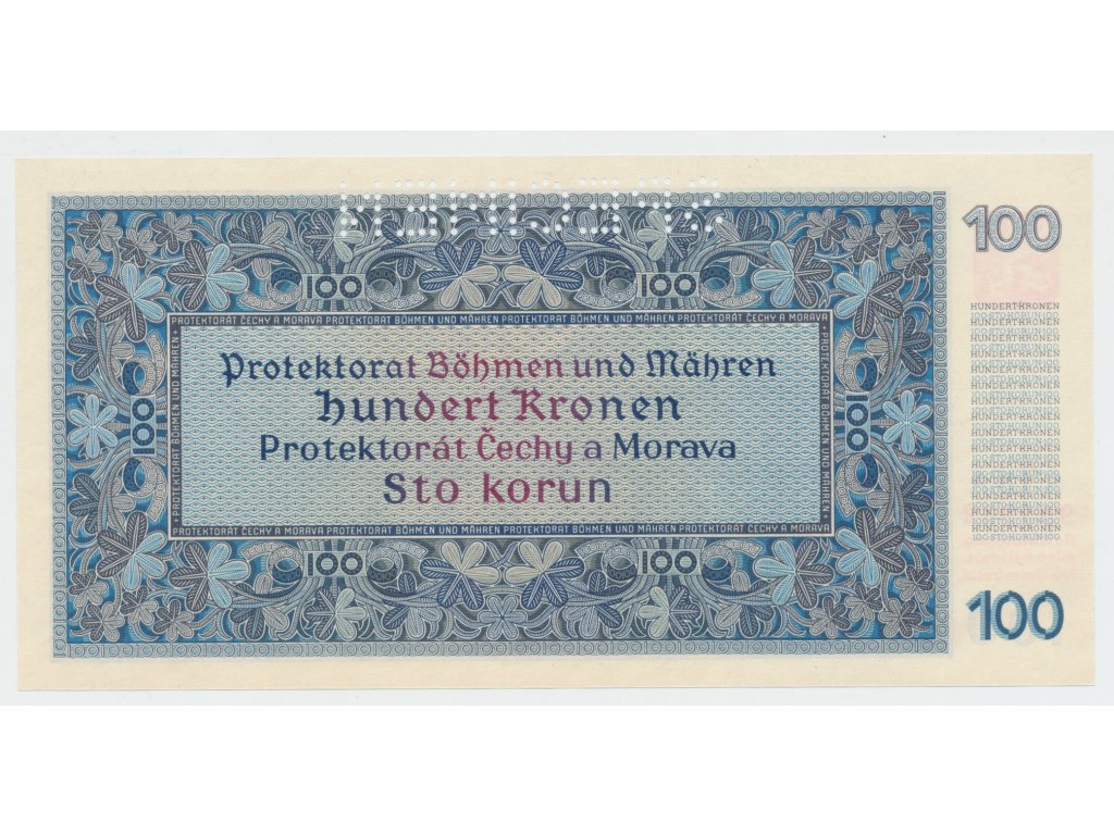 Protektorát Čechy a Morava, 100 Koruna 1940, I. vydání, série A, perf. 1x SPECIMEN, Hej.32aA.S1