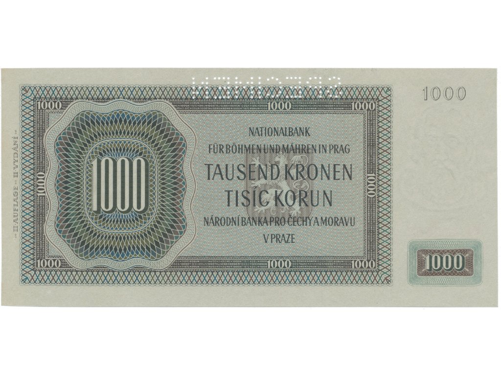 Protektorát Čechy a Morava, 1000 Koruna 1942, II. vydání, perf. 1x SPECIMEN, Hej.39a.S1