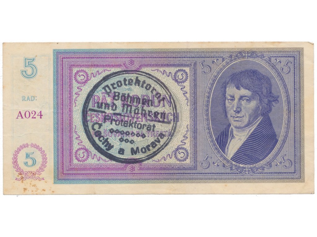 5 Koruna b.d. (1938/1940), ruční razítko, Hej.29a