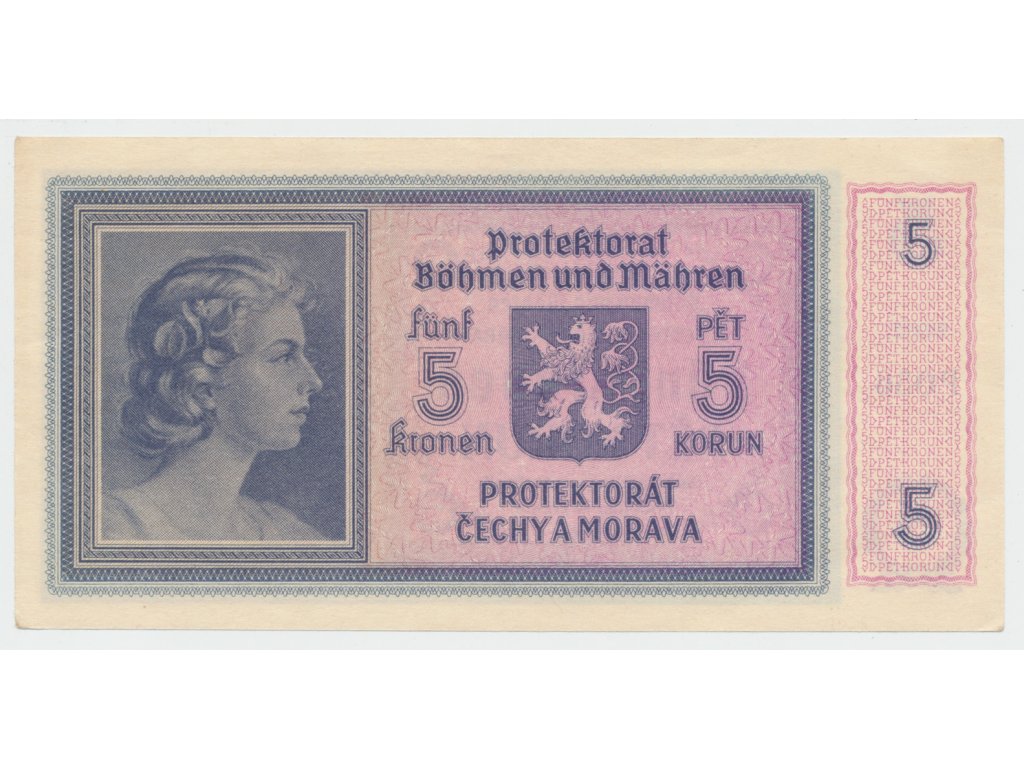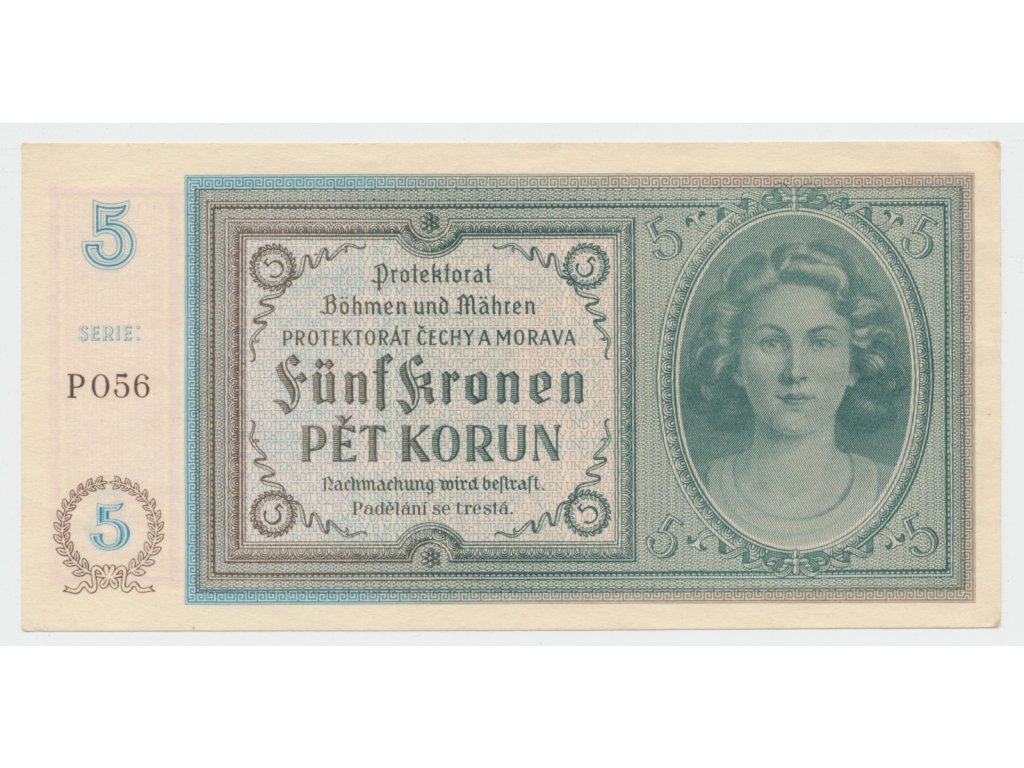 Protektorát Čechy a Morava, 5 Koruna b.d. (1940), tisk Pardubice, série P, Hej.31d