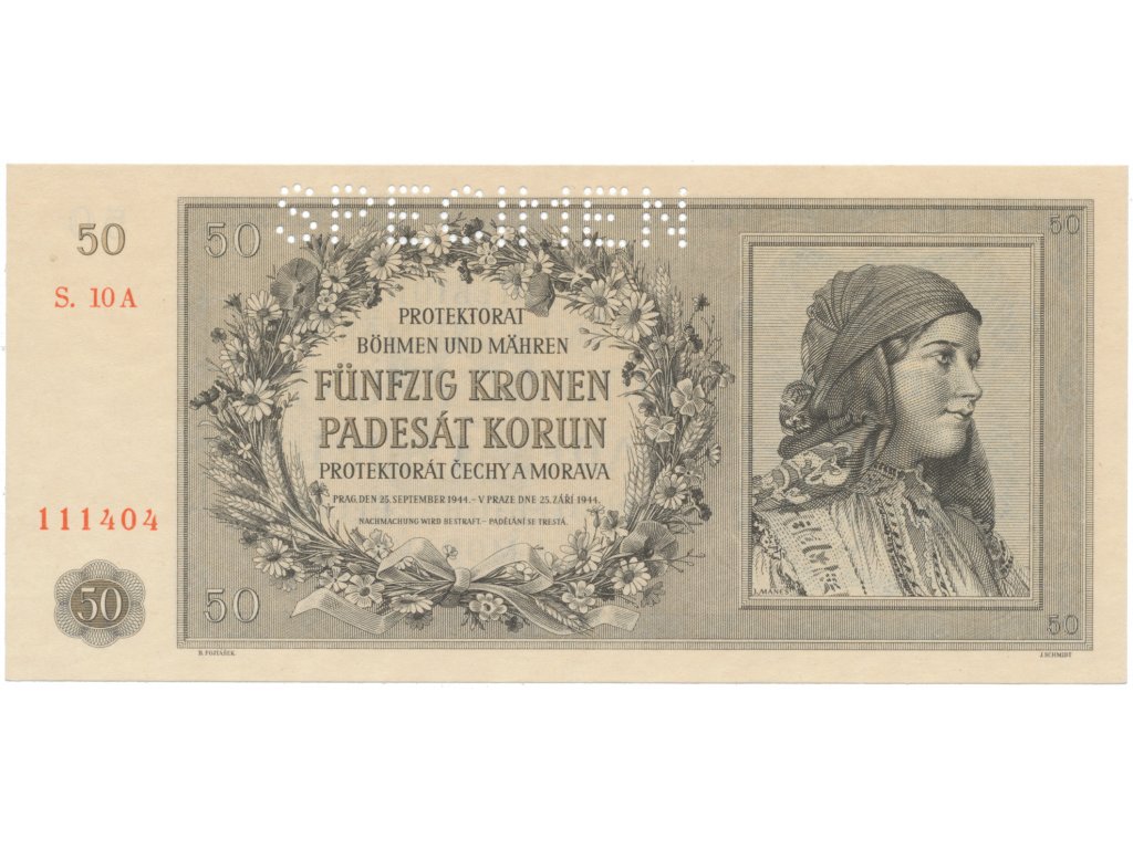 50 Koruna 1944, SPECIMEN, Hej.42a.S1