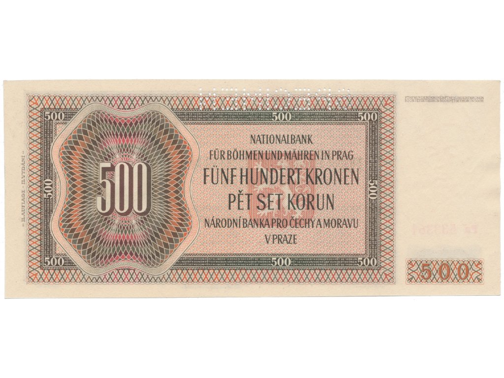 500 Koruna 1942, II. vydání, SPECIMEN, Hej.36a.S1