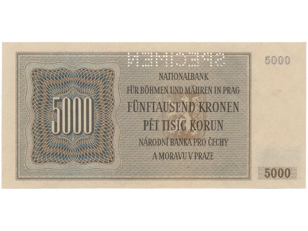 Protektorát Čechy a Morava, 5000 Koruna 1944, perf. 1x SPECIMEN, Hej.41a.S1