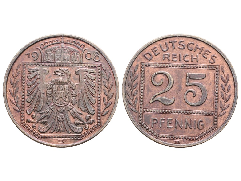 Prusko, 25 Pfennig 1908 D - Zkouška
