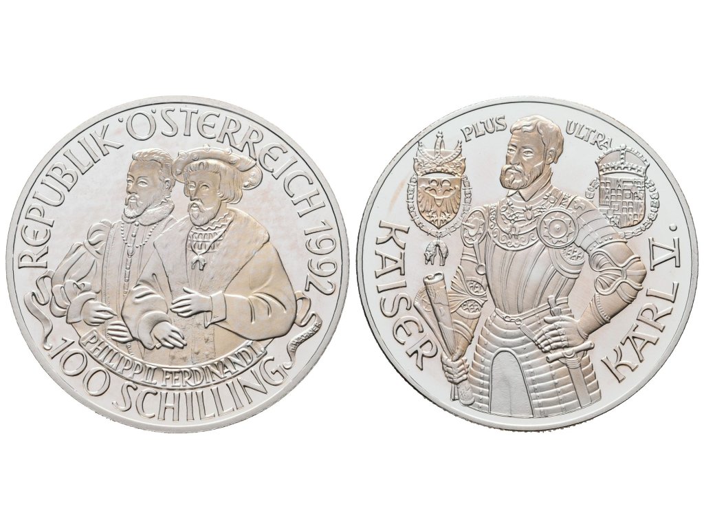 Rakousko, 100 Schilling 1992 - Císař Karel V.