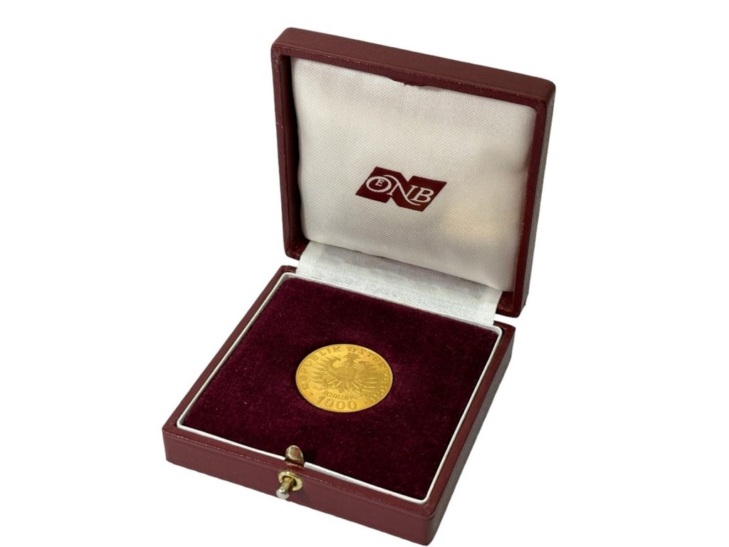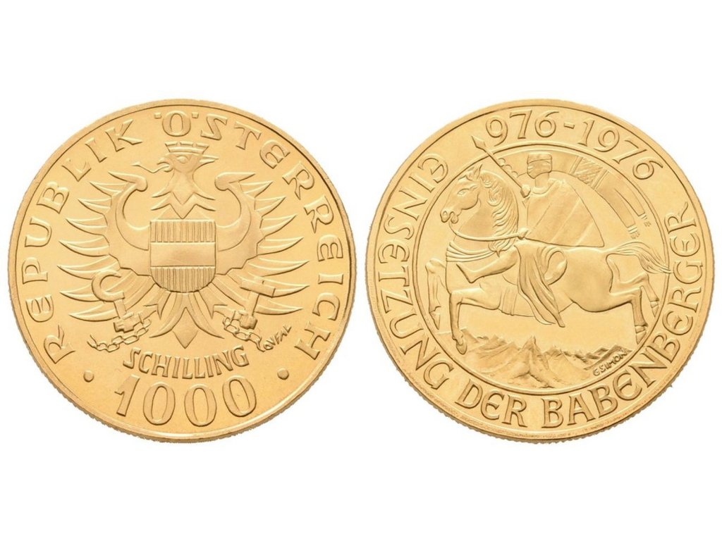 1000 Schilling 1976 - Babenbergové, Au 0,900, 27 mm (13,5 g), pův. etue Rakouské národní banky